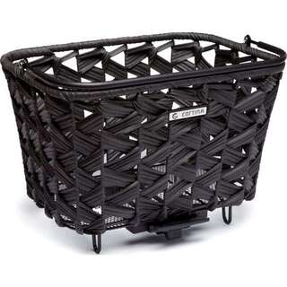 Cortina Mand Saigon AVS zwart. Rechthoekige mand met ronde hoeken gemaakt van imitatie seagrass en voorzien van kliksysteem geschikt voor AtranVelo System (AVS) en passend op de Cortina Common voor- en achterdrager en de E-Octa achterdrager. Met soft grip handvat in mat zwart. Gemaakt van polyesther en weersbestendig. Afmeting lxbxh 34x24x22cm. Indien de drager niet is voorzien van het AVS systeem dan moet er gebruik gemaakt worden van de AVS adapter (bij te bestellen met AVS174941).