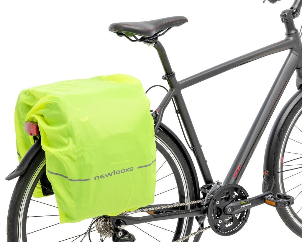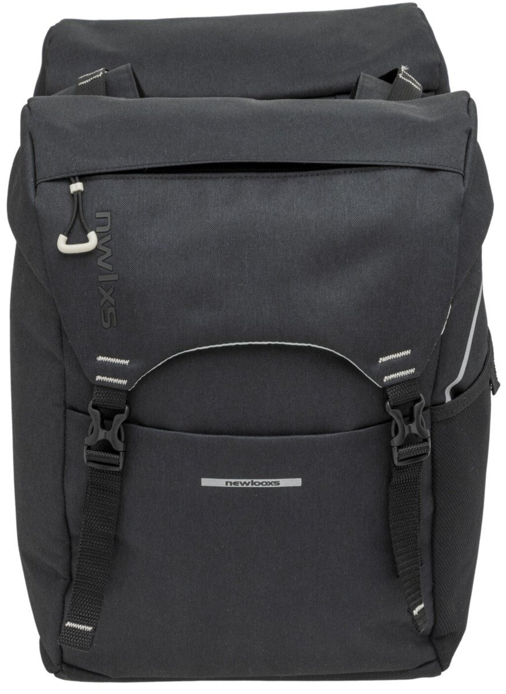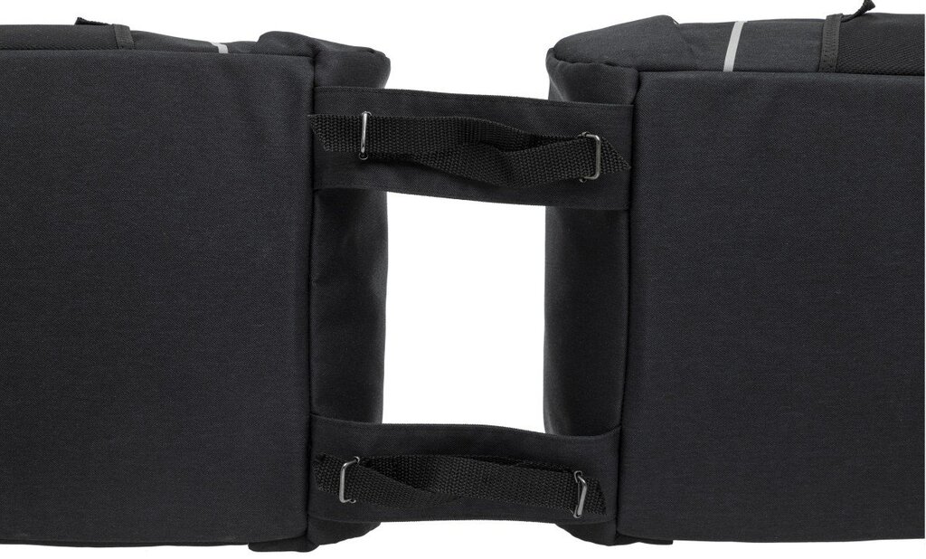Uit de New Looxs Sports-serie: deze praktische en sportieve tas voor achterop de fiets. Deze dubbele fietstas is uitgevoerd in het zwart. De tas is gemaakt van waterafstotend polyester en voorzien van meerdere reflecterende onderdelen. Inclusief regenhoes! Praktische opbergruimte De Sports Double van New Looxs bestaat uit twee ruime hoofdvakken met een extra voorvak met klittenband. De klep van de tas sluit u af met twee verstelbare klikgespen. Op deze flap vindt u een extra vak met rits. Handig voor bijvoorbeeld sleutels of uw mobiele telefoon. Een flesje drinken plaatst u in één van de twee zijvakken.